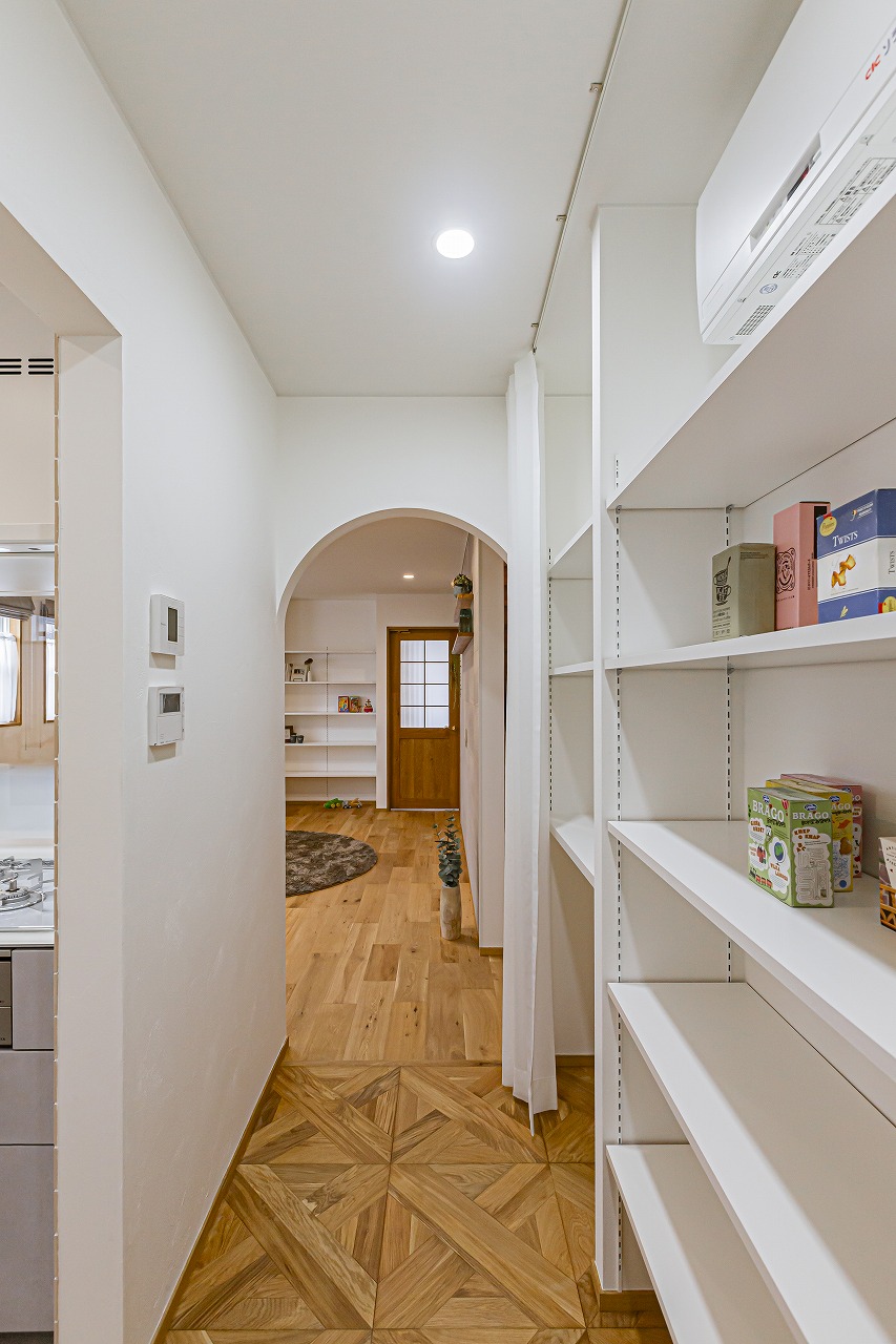 ドアのアーチや丸みのある壁が、空間全体をやさしく包み込んでくれる。