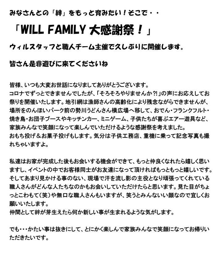 - 「‟絆プロジェクト”WILL FAMILY大感謝祭」