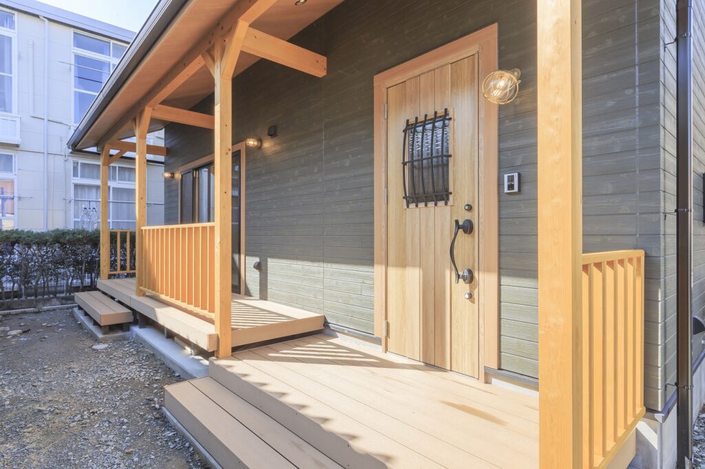 カバードポーチのある趣味を楽しむ家