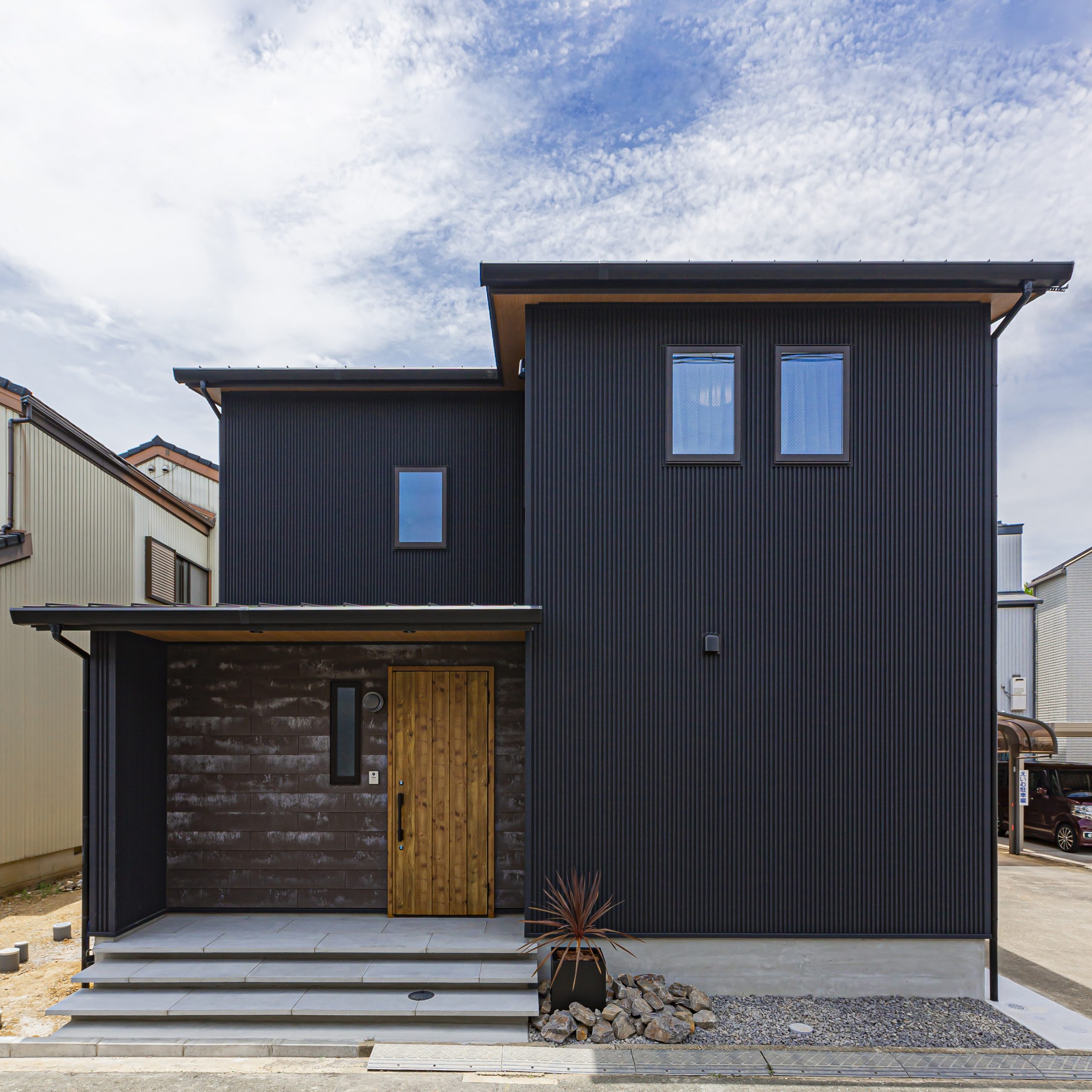 同じブラックの外壁でも、仕上げ材が変わると雰囲気が大きく変わります。
